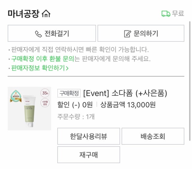 1. 마녀공장 공식홈페이지, 주문번호 190717001928200